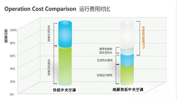 其地源热泵的COP值达到了4以上,也就是说消耗1KWh的能量,用户可得到4KWh以上的热量或冷量。处不在。这种储存于地表浅层近乎无限的可再生能源,使得地能也成为清洁的可再生能源一种形式。